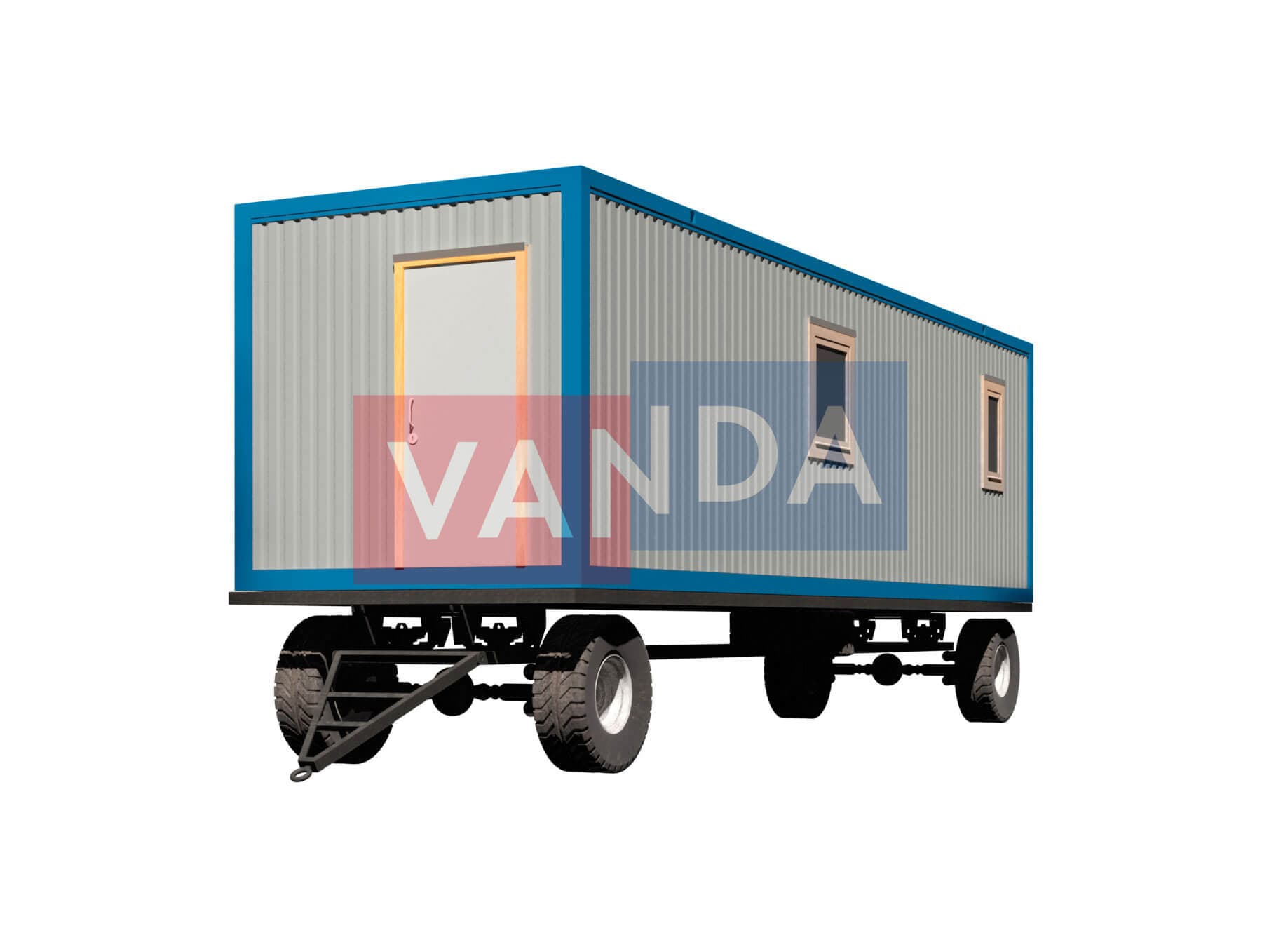 Строительный вагончик на шасси 9,0 x 2,4 изготавливается из несущего каркаса (верхняя и нижняя обвязка): швеллер 100х50х3 мм., угловые стойки: сложно - гнутый угол 90х90х3 мм., крыша блок-контейнера: металл сварной 0,9-1 мм., качественная наружная отделка: оцинкованный профлист, внутренняя отделка стен: Панели ПВХ, внутренняя отделка потолка: Панели ПВХ, вспомогательный деревянный каркас (стены): брусок 40х75 мм., лаги пола: обрезная доска 40х100 мм., лаги потолка: обрезная доска 40х100 мм., выполнено утепление: Минеральная вата «ISOVER» – 50 мм. и пароизоляция: плёнка техническая, черновой пол состоит из: обрезная доска 20 мм. (2 сорт), чистовой пол покрыт: ДСП строительное 16 мм., отделка пола выполнена из качественных материалов. Контейнер комплектуется окнами: деревянное, двойное остекление 800х1000, входной дверью: ДГ 21-8 обшита снаружи оцинкованным листом, врезной замок и внутренними дверями: ДГ 21-8 (при наличии перегородки). Если в БК присутствуют перегородки, то для них используется: брусок 40х50 мм.